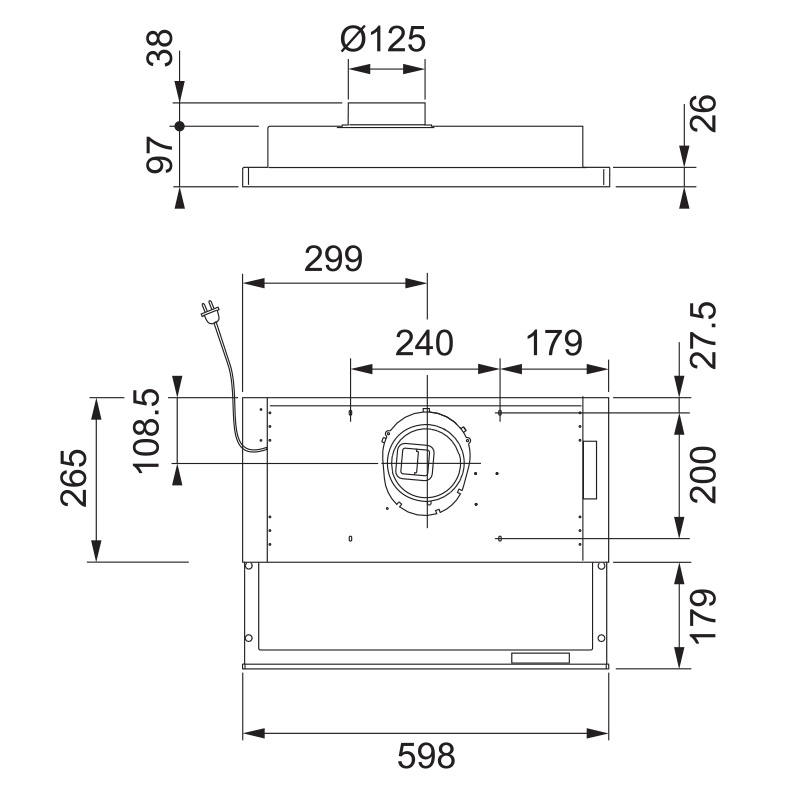 Ulosvedettävä liesikupu, jossa ei ole omaa moottoria vaan se