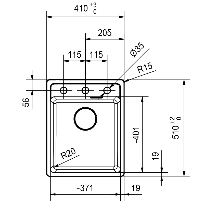 Hanareikä 1 x Ø 35 mm + 2 esiporattua