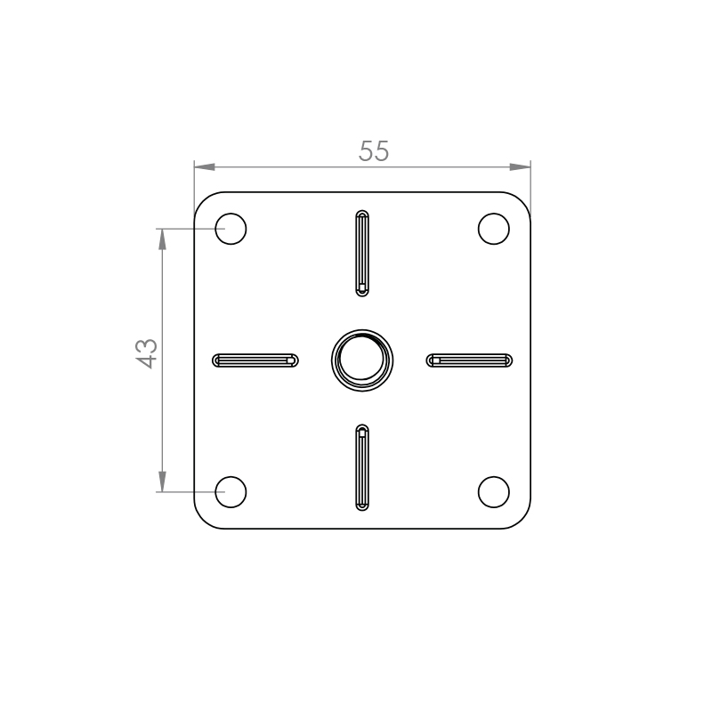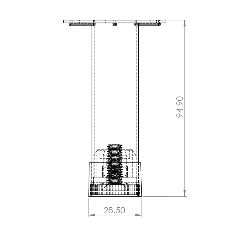 Neliskanttinen säädettävä metallijalka. – kromattu – korkeus 100 mm – 25 x 25 mm