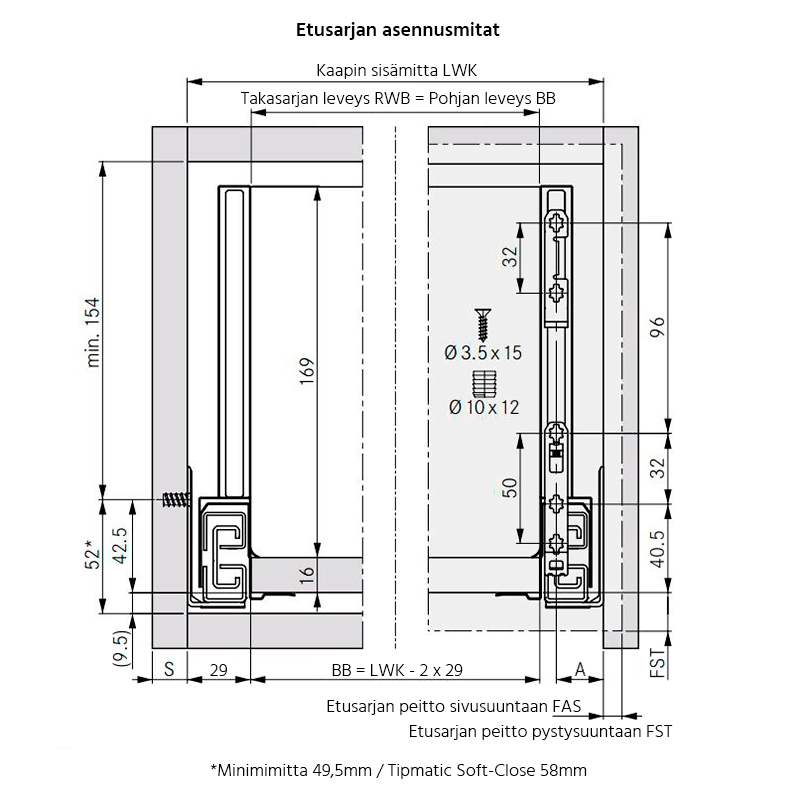 ikea sivu, pituus 500 mm. Grass Nova Pro Scala on suorakulma
