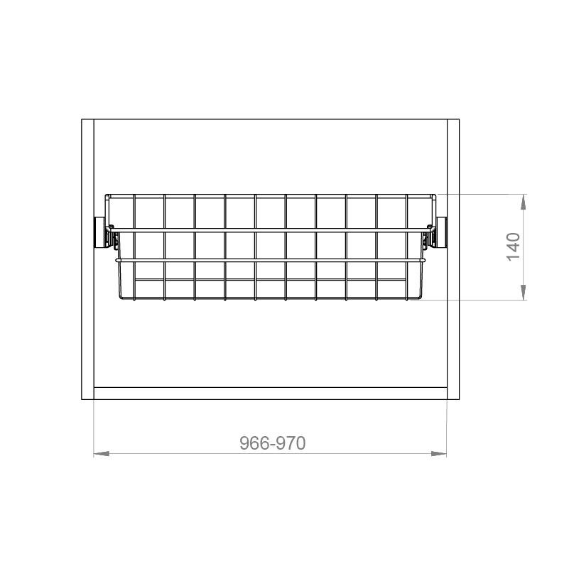 966-970 mm. Kori on 440 mm syvä ja 140 mm korkea.