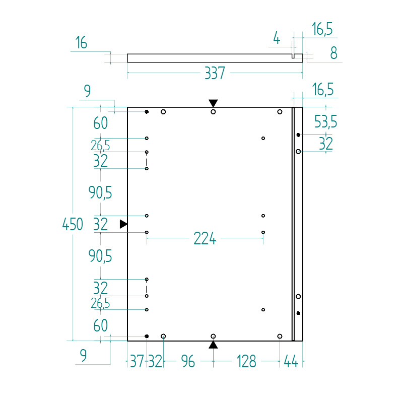 hyllynkannakkeet. Rungossa saranan aluslevy porausten