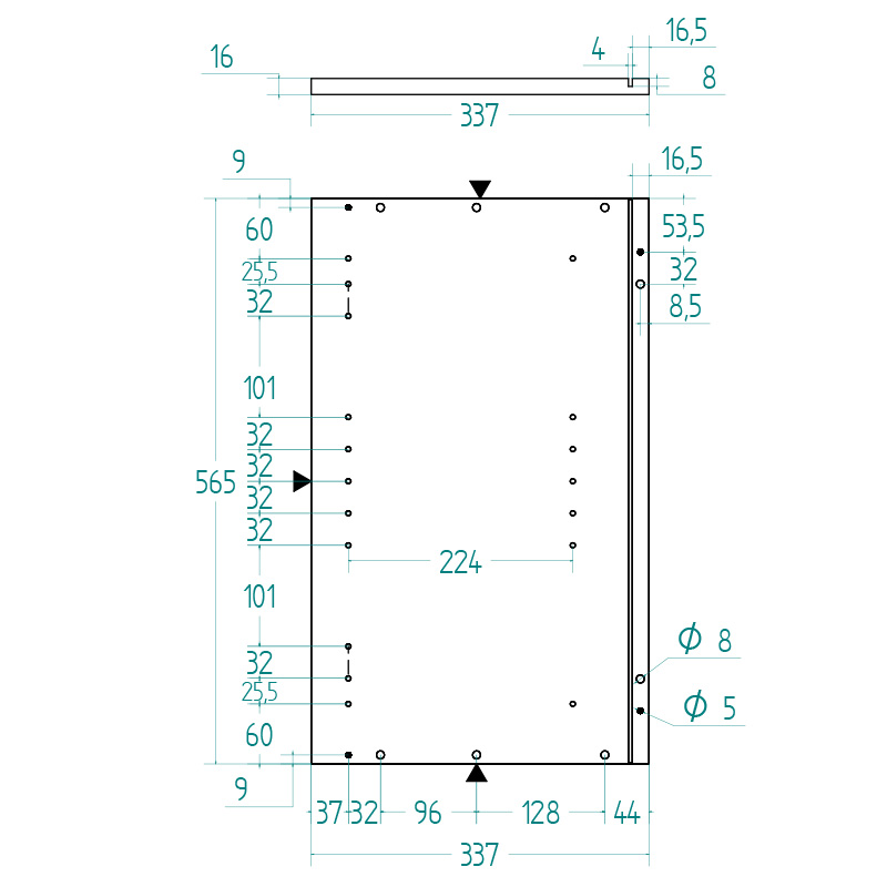 hyllynkannakkeet. Rungossa saranan aluslevy porausten