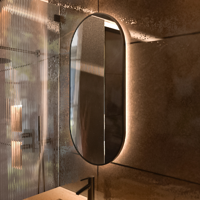 alumiinikehys. Peilin takana on tehokas lednauha 3000K